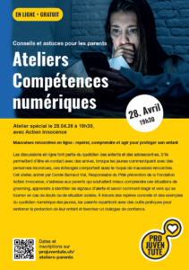 - Nouveau! Mauvaises rencontres en ligne : repérer, comprendre et agir pour protéger son enfant – 28.04.2026 – en collaboration avec Action Innocence