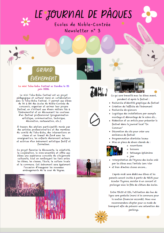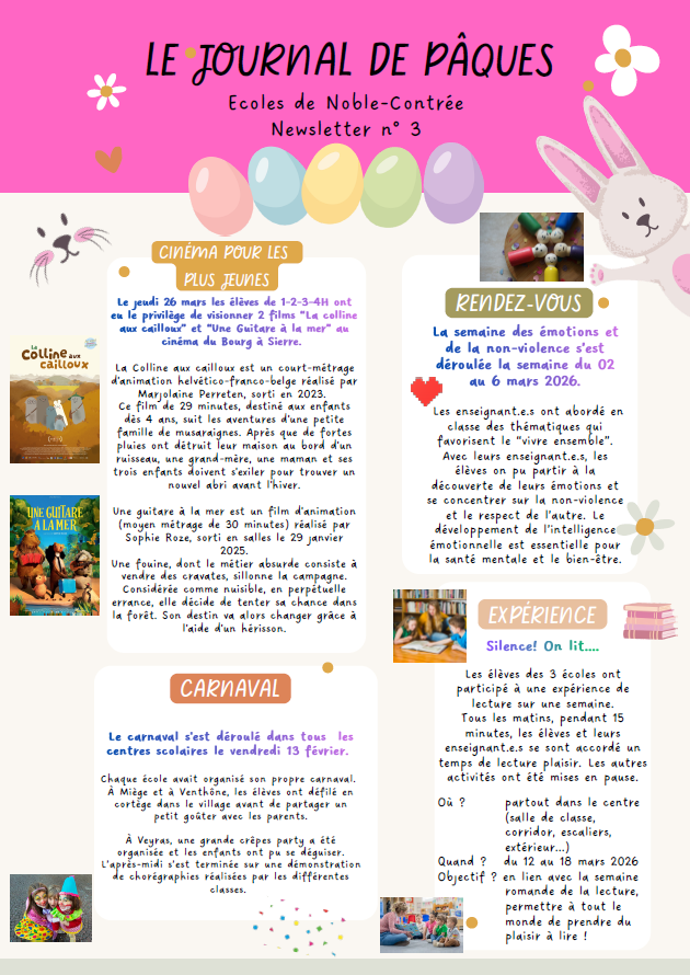 Newsletter des écoles de Noble-Contrée